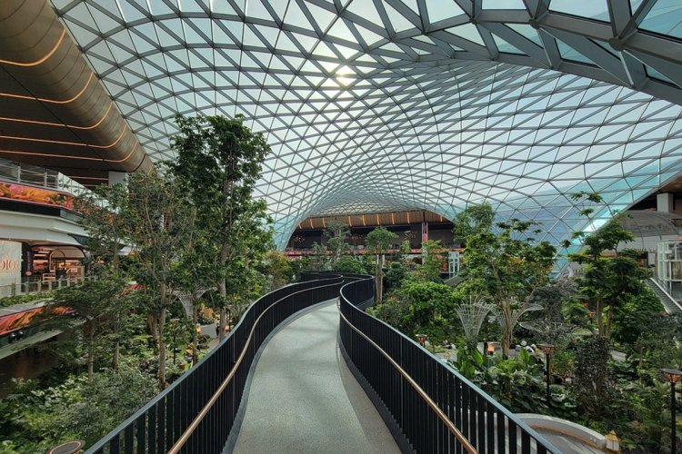 Its crown jewel is Jewel Changi Airport, home to the 40-meter Rain Vortex, the tallest indoor waterfall in the world. Surrounding it are tropical gardens with over 2,000 trees and 100,000 plants, hanging bridges, a sunflower garden, a butterfly dome, and even a hotel.