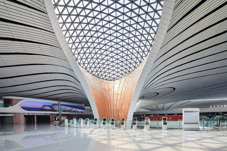 Designed by the late Zaha Hadid, Daxing is a masterpiece of modern architecture. The enormous terminal, shaped like a starfish, connects its concourses through a sunlit central dome.